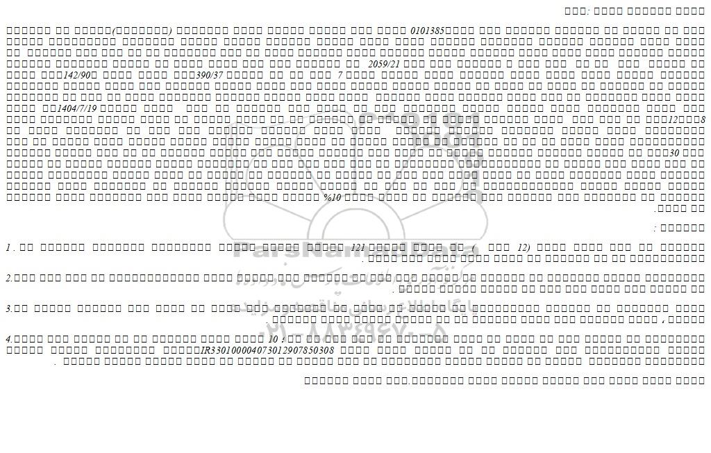تمام آگهی ها طبق نمونه تصویر آگهی صرفا جهت اطلاع رسانی می باشد در خصوص استفاده از این آگهی هر گونه مسئولیت پرداخت به آگهی دهنده و بررسی و احراز هویت به عهده شرکت کنندگان می باشد و پایگاه خبری پارس نماد هیچگونه منفعت و مسئولیتی بابت تعهد این آگهی ندارد.