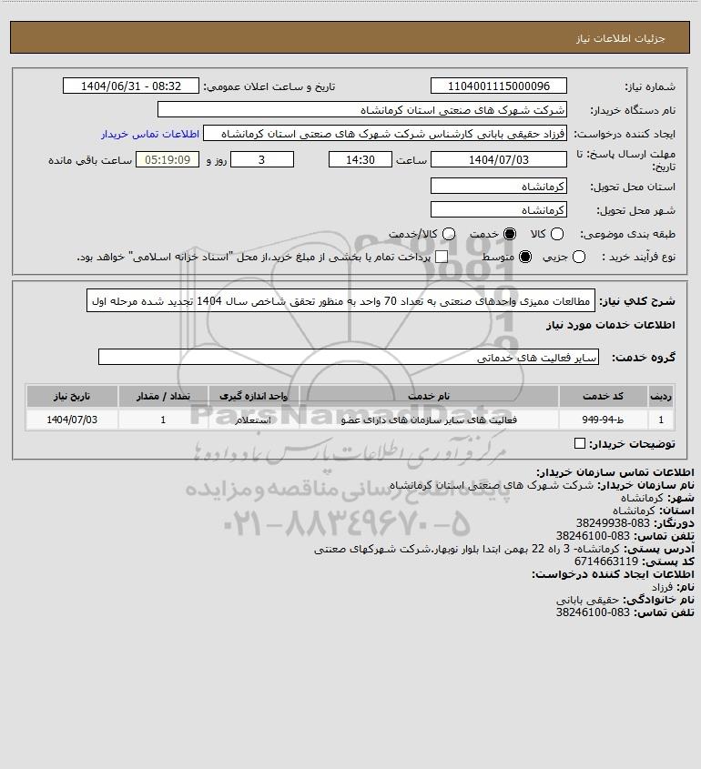 نام دستگاه خریدار:شرکت شهرک های صنعتی استان کرمانشاه