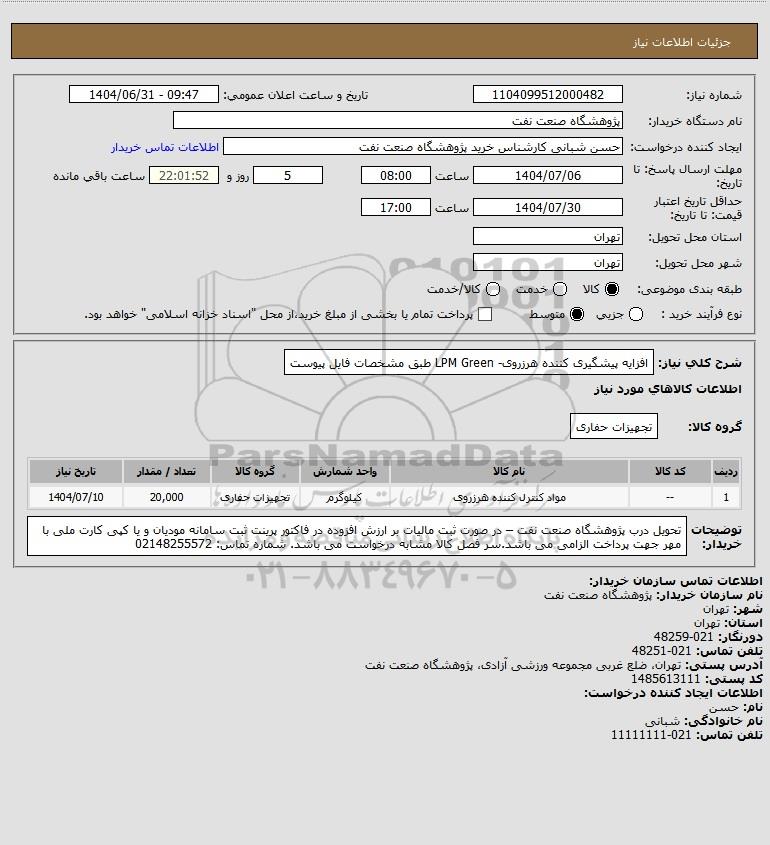 نام دستگاه خریدار:پژوهشگاه صنعت نفت
