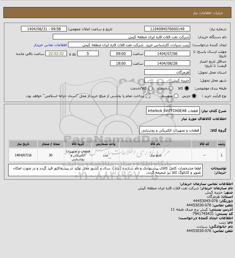 نام دستگاه خریدار:شرکت نفت فلات قاره ایران منطقه کیش