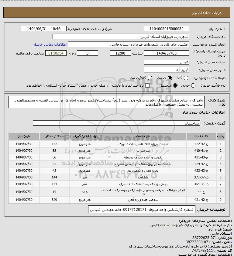 نام دستگاه خریدار:شهرداری فیروزاباد استان فارس