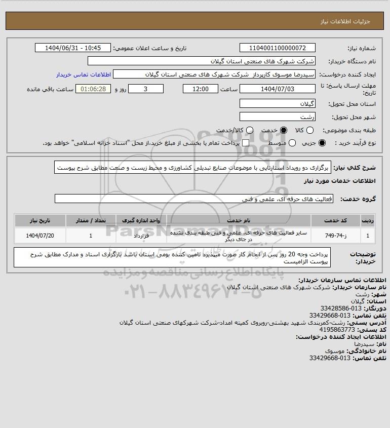 نام دستگاه خریدار:شرکت شهرک های صنعتی استان گیلان