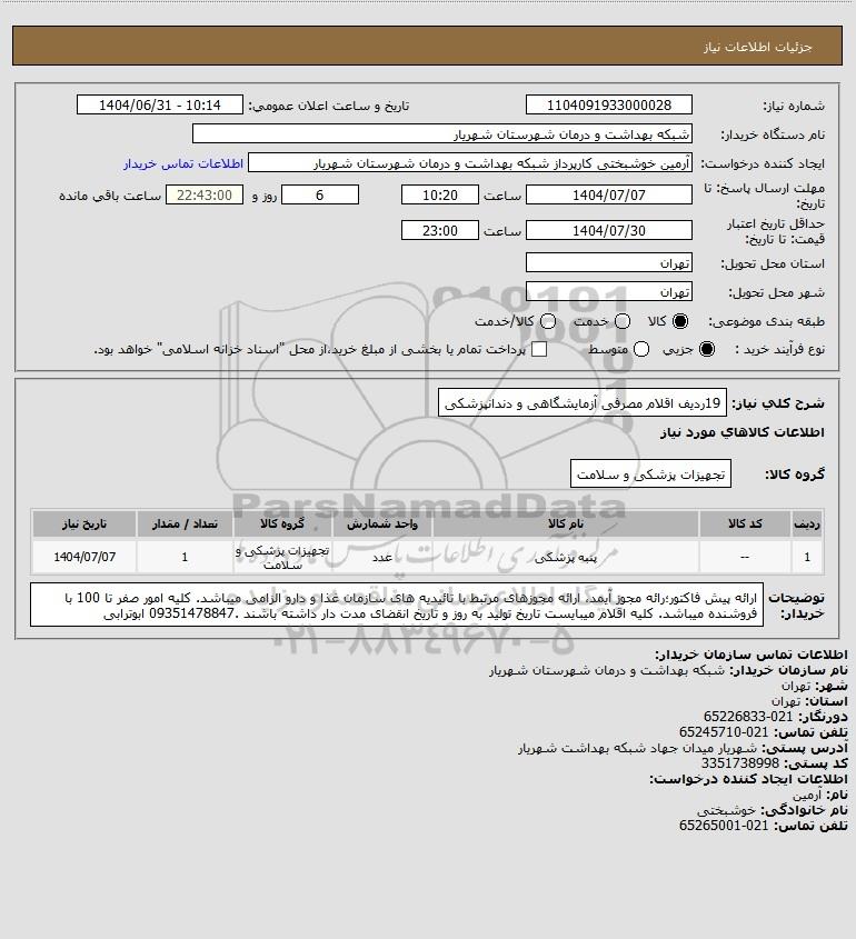 نام دستگاه خریدار:شبکه بهداشت و درمان شهرستان شهریار