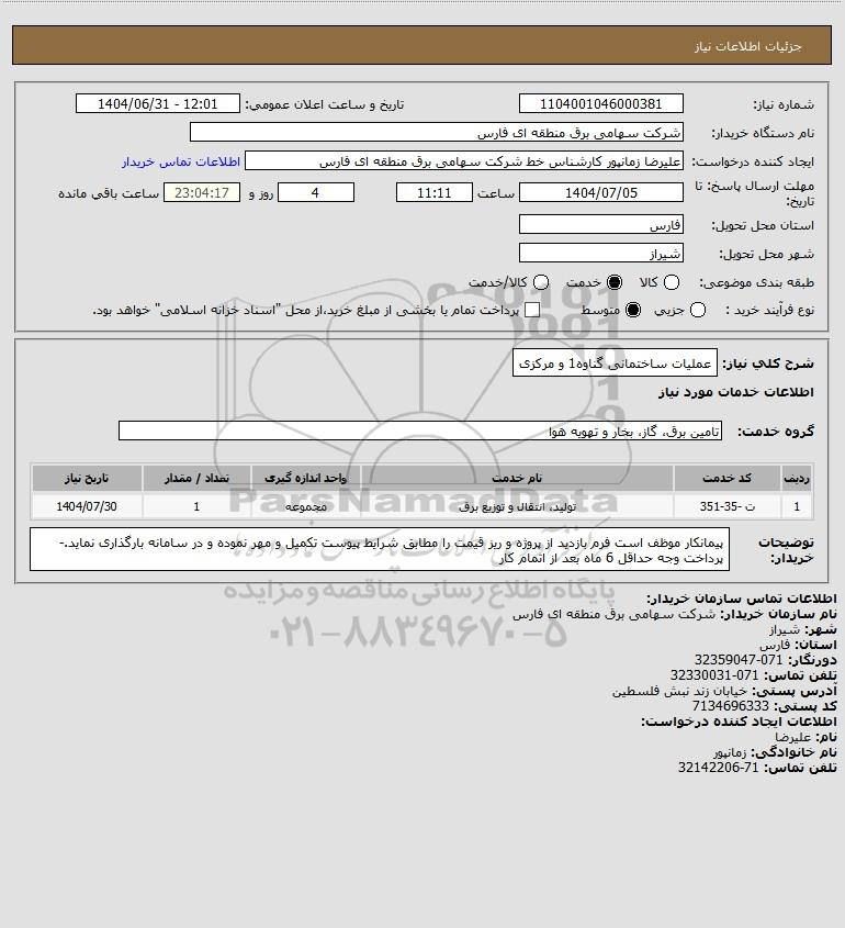 شرح کلی نیاز: عملیات ساختمانی گناوه1 و مرکزی