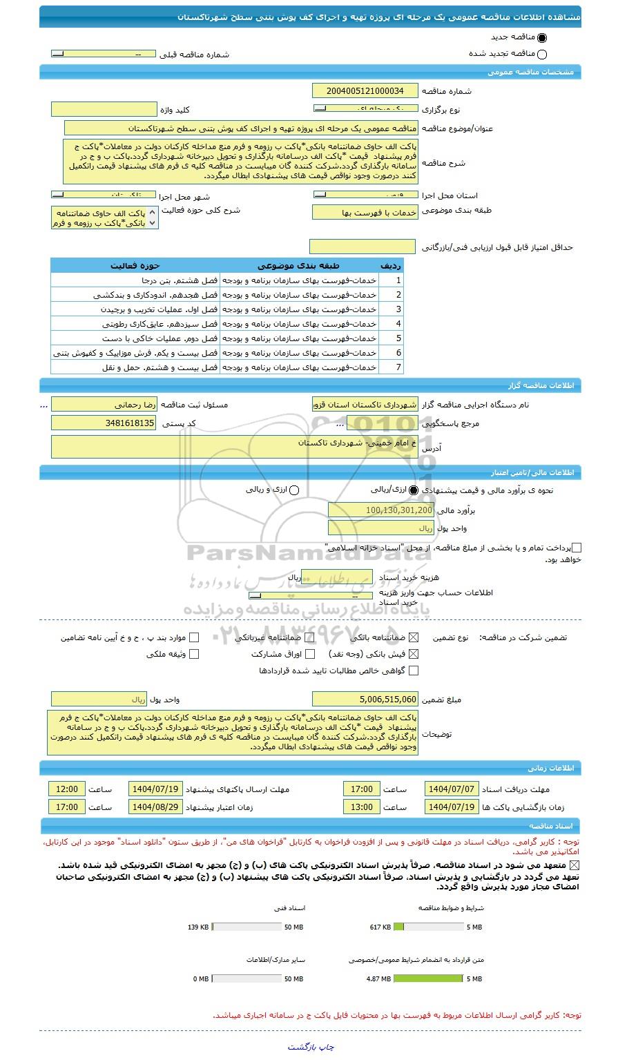 | مبلغ تضمین | 5,006,515,060 | واحد پول | ریال |