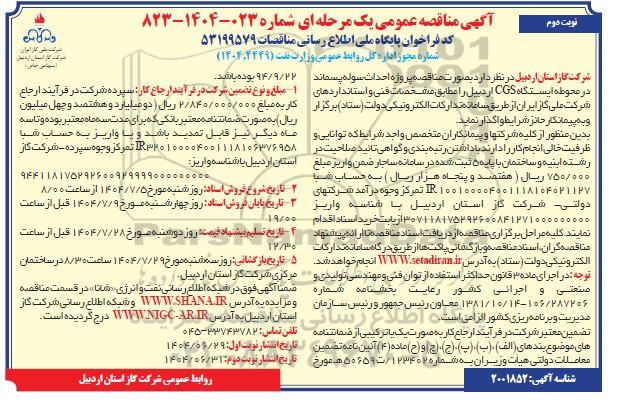 آگهی مناقصه عمومی یک مرحله ای شماره 023-1404-823 ؟ نوبت دوم