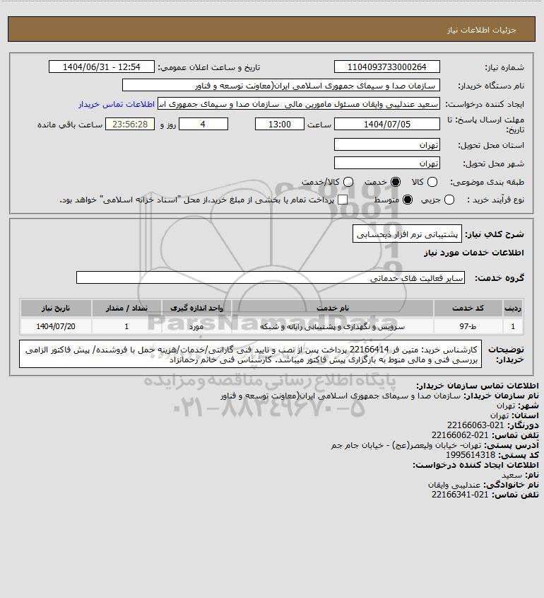 نام دستگاه خریدار: سازمان صدا و سیمای جمهوری اسلامی ایران(معاونت توسعه و فناور