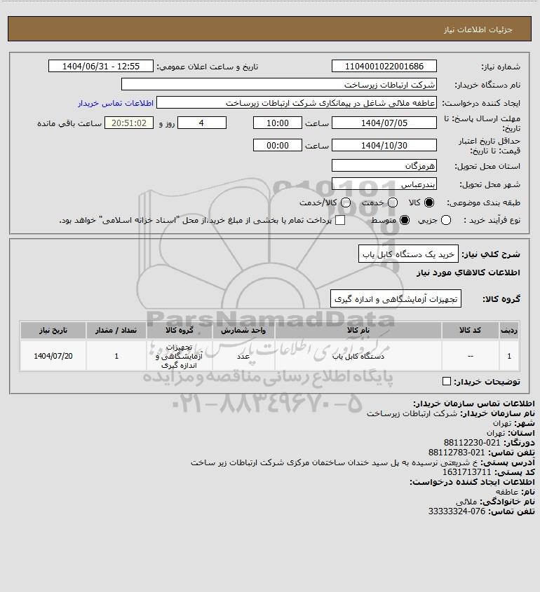 شرح کلی نیاز: خرید یک دستگاه کابل یاب