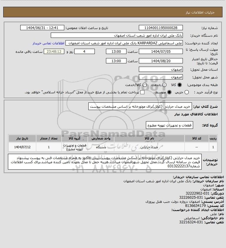 نام دستگاه خریدار:بانک ملی ایران اداره امور شعب استان اصفهان