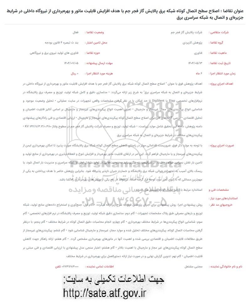 فراخوان اصلاح سطح اتصال کوتاه شبکه برق پالایش گاز...., فراخوان اصلاح سطح اتصال کوتاه شبکه برق پالایش گاز....