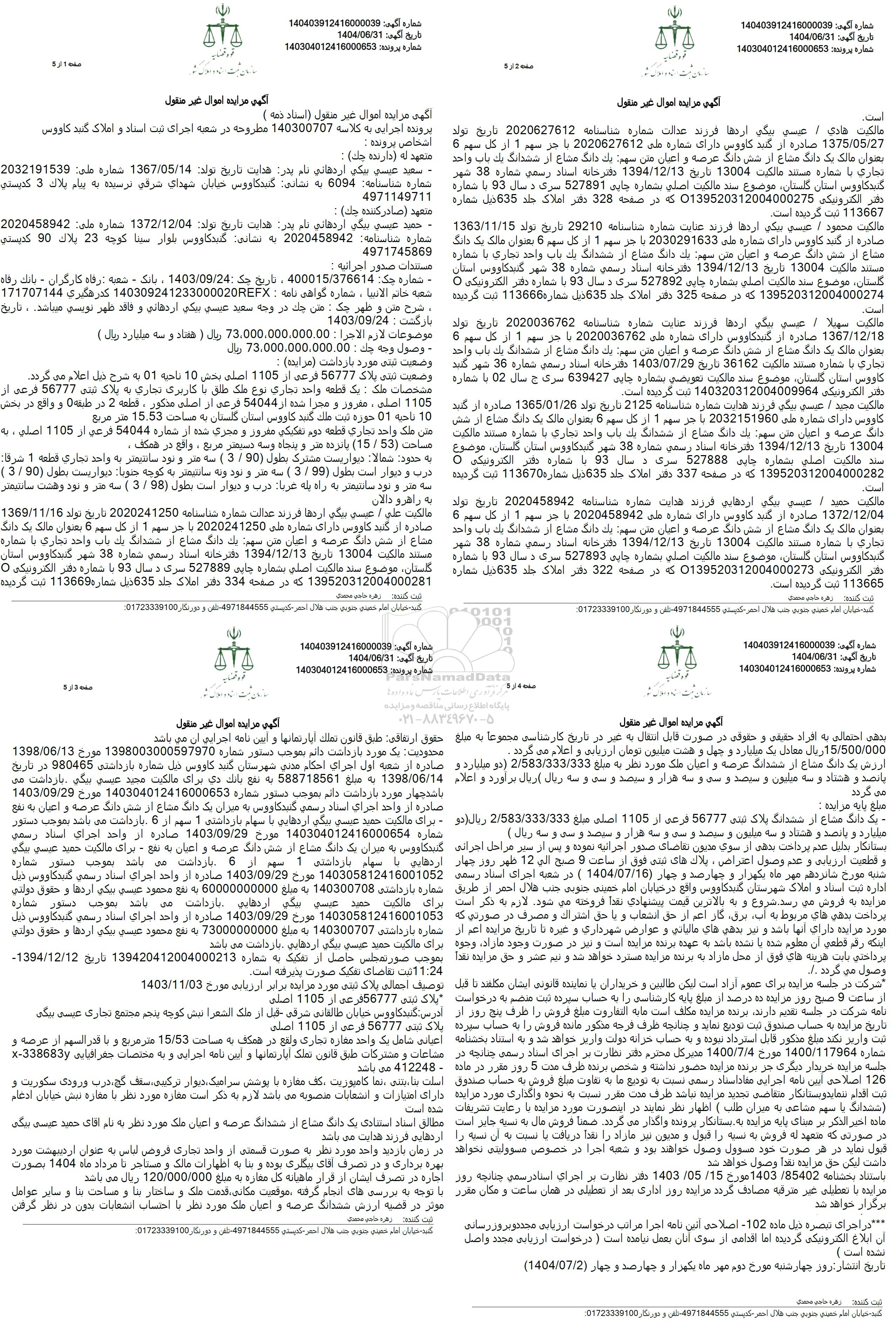 اگهی مزایده اموال غیرمنقول