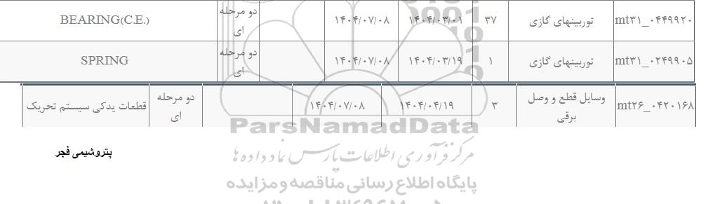 | mt31-0449605 | توربینهای گازی | 1 | 1404.7.8 | دو مرحله ای | SPRING |