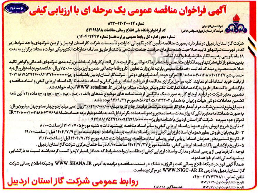 آگهی فراخوان مناقصه عمومی یک مرحله ای با ارزیابی کیفی شماره 024-1404-823 ؟