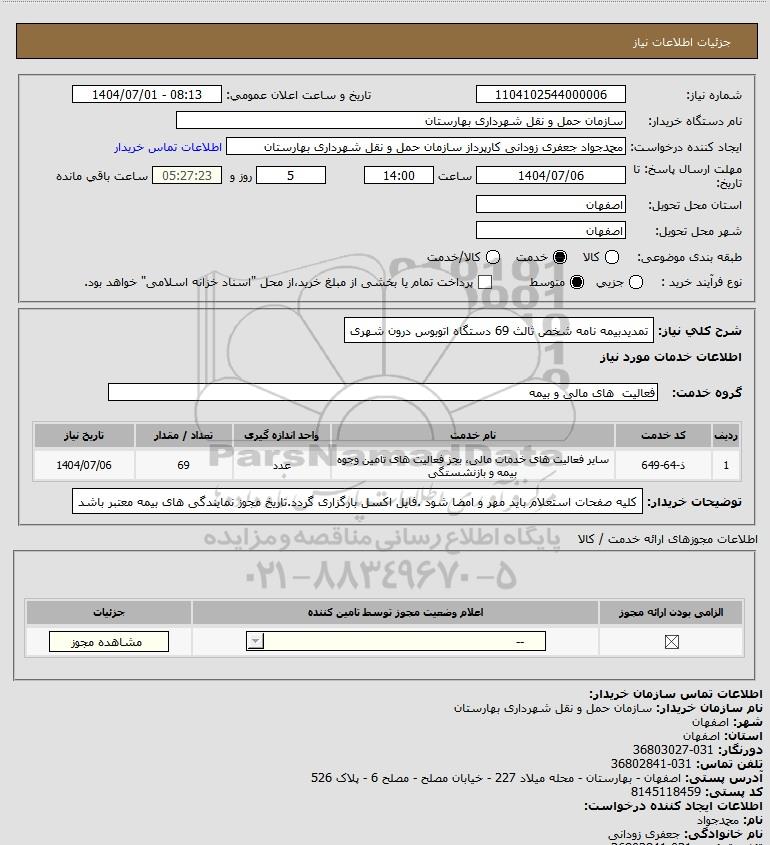 استعلام تمدیدبیمه نامه شخص ثالث 69 دستگاه اتوبوس درون شهری, استعلام تمدیدبیمه نامه شخص ثالث 69 دستگاه اتوبوس درون شهری