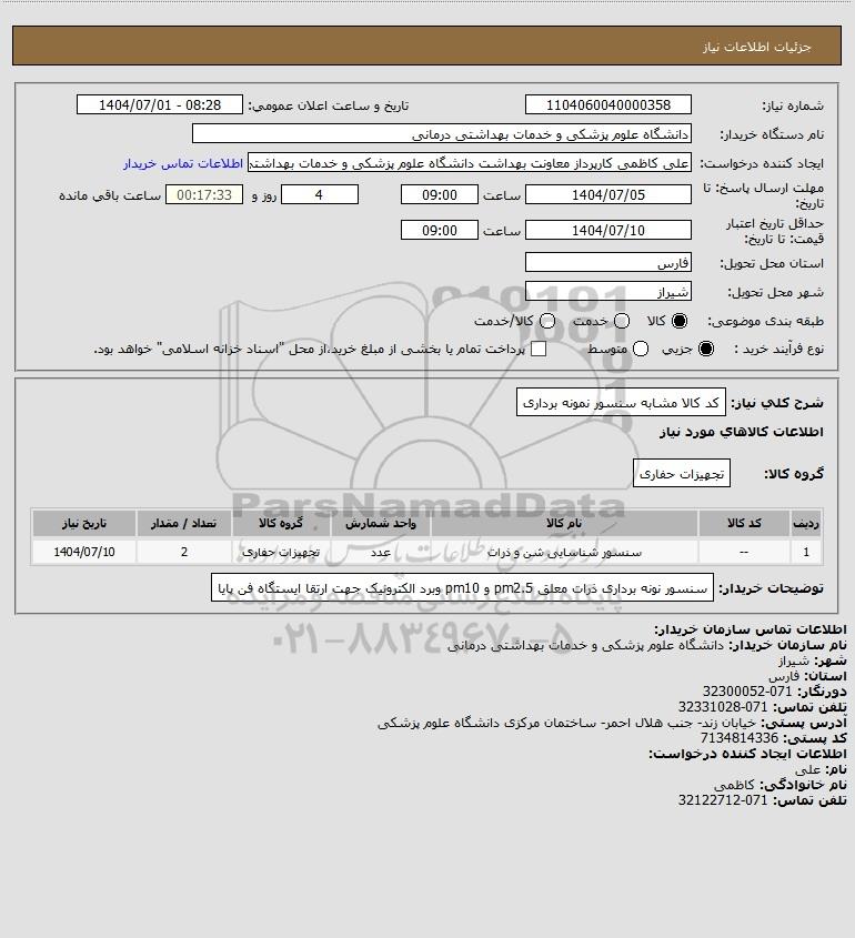 شرح کلی نیاز: کد کالا مشابه سنسور نمونه برداری