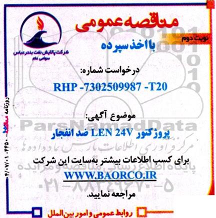 مناقصه پروژکتور LEN 24v ضد انفجار / نوبت دوم از کلیه افراد متخصص و شرکتها واجد شرایط دعوت به عمل میآید در مناقصه با کد خبرگزاری پارس نماد: 9588065 شرکت نمایند.
