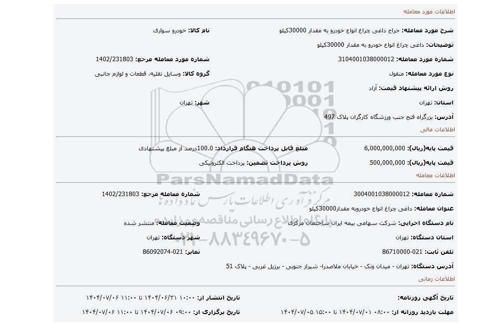 | شماره معامله: 3004001038000012 | شماره معامله مرجع: 1402/231803 | |