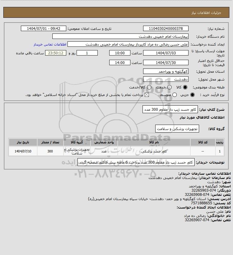 | 1 | -- | کاور جسد پزشکی | عدد | تجهیزات پزشکی و سلامت | 300 | 1404/07/10 |
