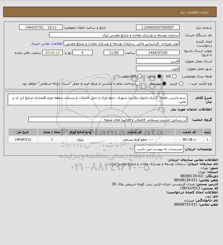 نام دستگاه خریدار:سازمان توسعه و نوسازی معادن و صنایع معدنی ایران
