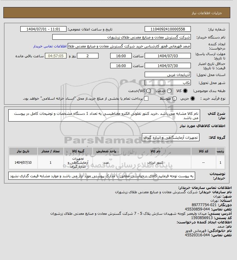 نام دستگاه خریدار:شرکت گسترش معادن و صنایع معدنی طلای زرشوران