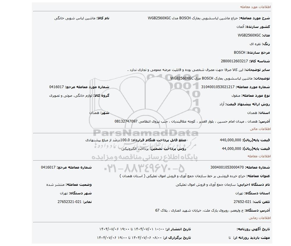 | شماره معامله: 3004001053000470 | شماره معامله مرجع: 0416017 | |