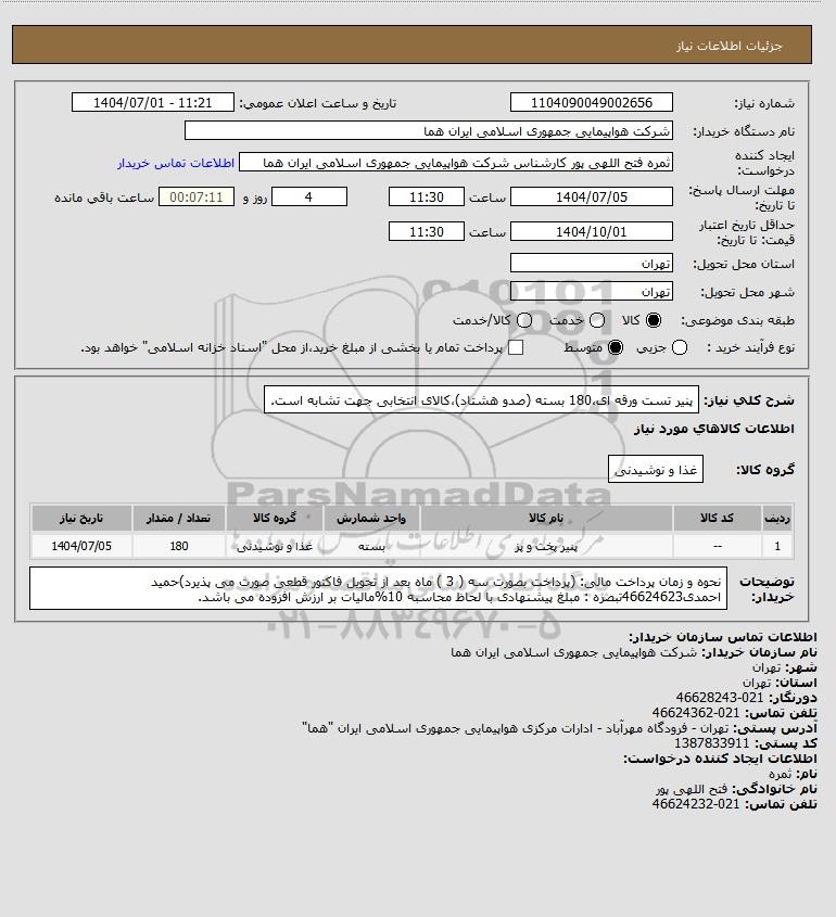 استعلام پنیر تست ورقه ای180 بسته (صدو هشتاد)کالای انتخابی جهت تشابه است., استعلام پنیر تست ورقه ای،180 بسته (صدو هشتاد)،کالای انتخابی جهت تشابه است.