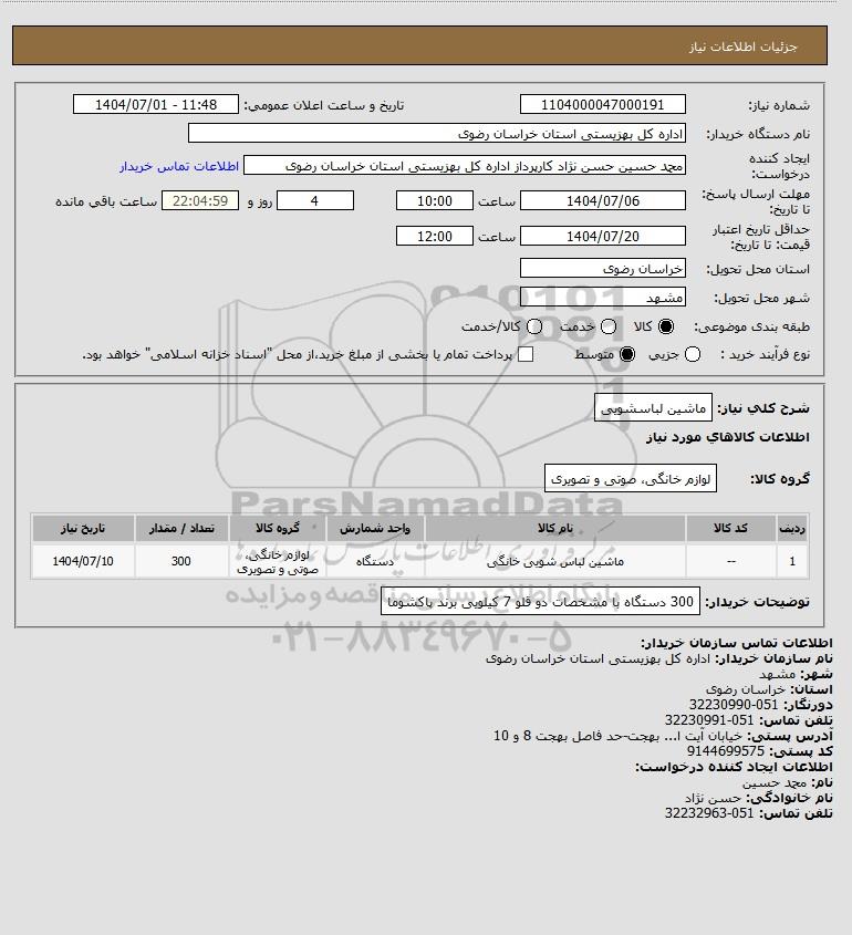 شرح کلی نیاز: ماشین لباسشویی