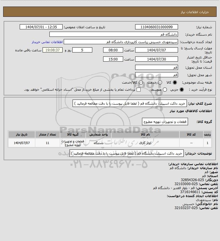 شرح کلی نیاز: خرید داکت اسپیلت دانشگاه قم ( لطفا فایل پیوست را با دقت مطالعه فرمائید )