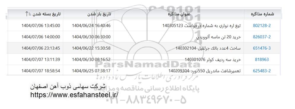 | 2- 802128 | تیغ اره نواری به شماره درخواست 140305123 | 1404.6.24 | 1404.7.6 |