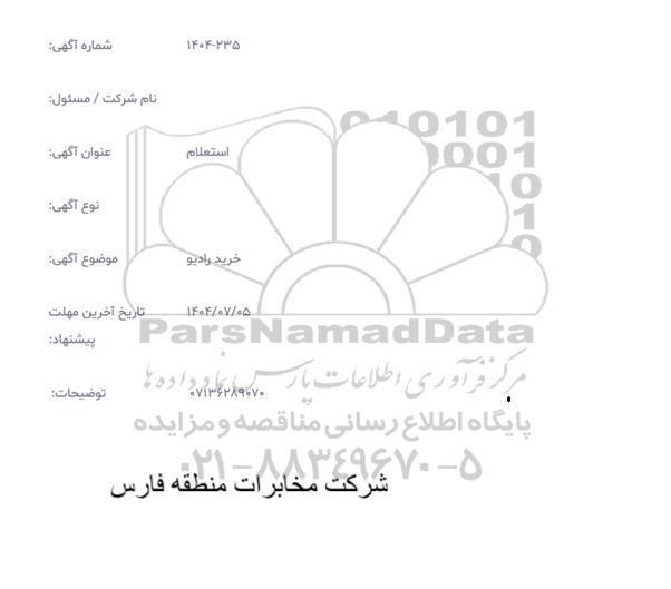 برای شرکت در مناقصه حتما از تصویر آگهی در سایت پارس نماد داده ها استفاده نمایید