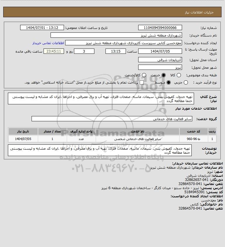 نام دستگاه خریدار:شهرداری منطقه شش تبریز