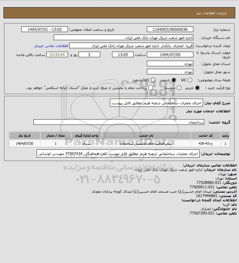 شرح کلی نیاز: اجرای عملیات ساختمانی شعبه هرمز