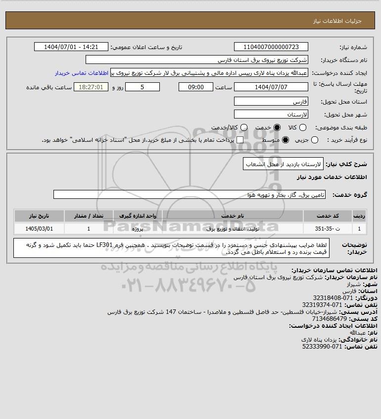 شرح کلی نیاز: لارستان بازدید از محل انشعاب