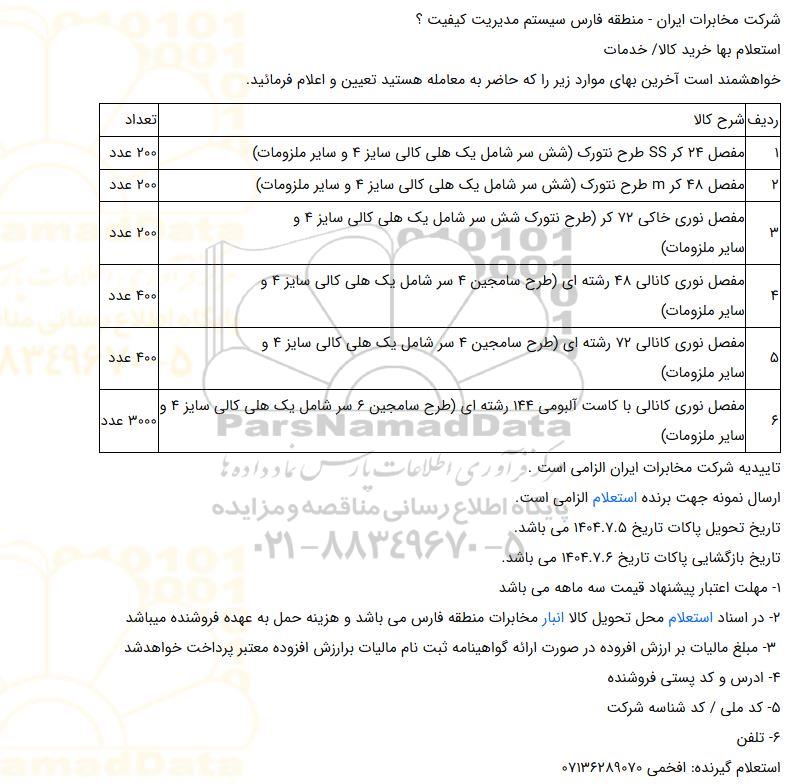 2- در اسناد استعلام محل تحویل کالا انبار مخابرات منطقه فارس می باشد و هزینه حمل به عهده فروشنده میباشد