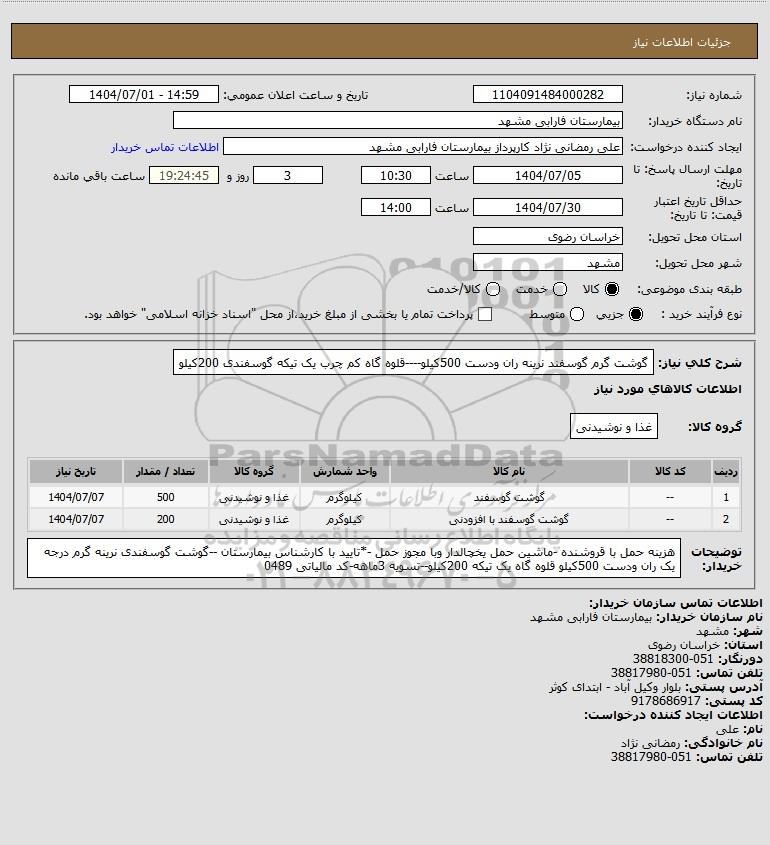 نام سازمان خریدار: بیمارستان فارابی مشهد