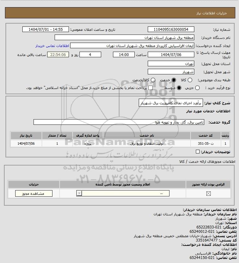 نام دستگاه خریدار:منطقه برق شهریار استان تهران