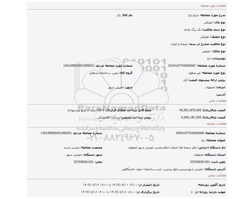| شرح مورد معامله: حراج باغ | نام کالا: باغ | |
