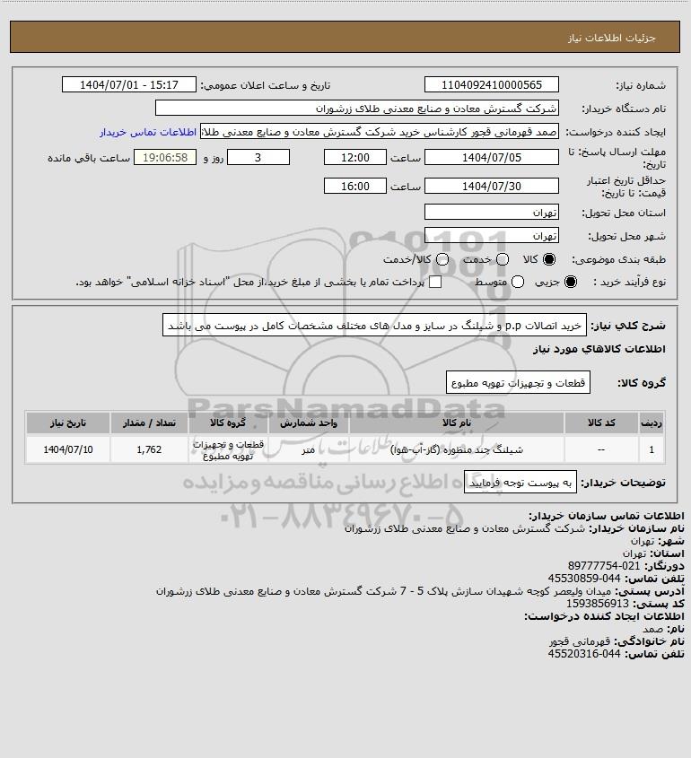 شرح کلی نیاز: خرید اتصالات p.p و شیلنگ در سایز و مدل های مختلف مشخصات کامل در پیوست می باشد