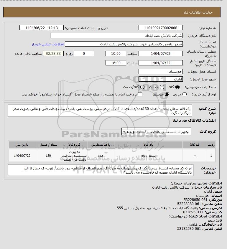 نام دستگاه خریدار:شرکت پالایش نفت ابادان