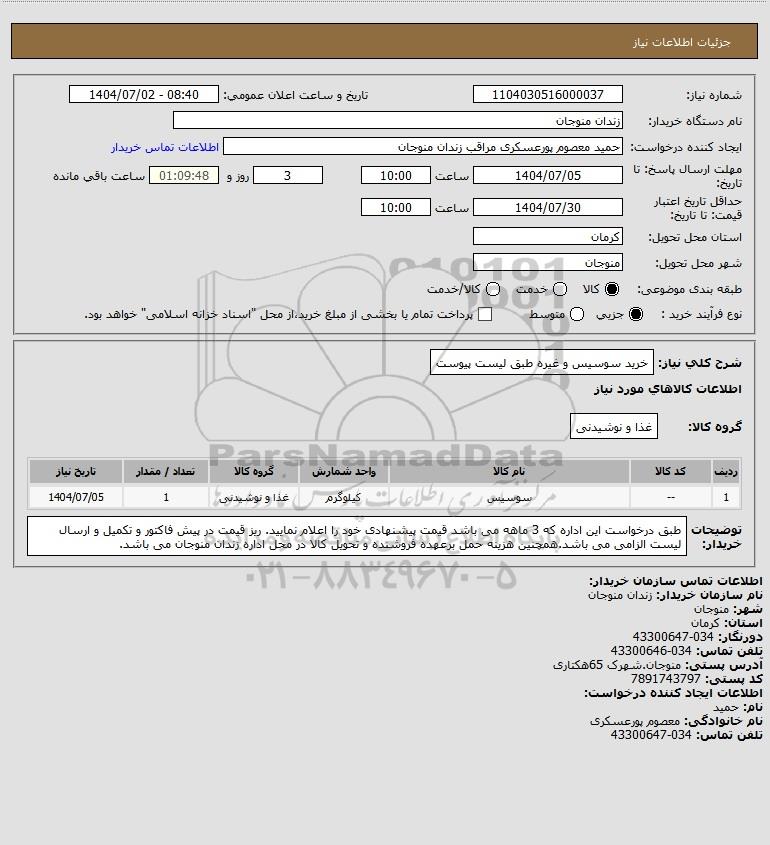 شرح کلی نیاز: خرید سوسیس و غیره طبق لیست پیوست