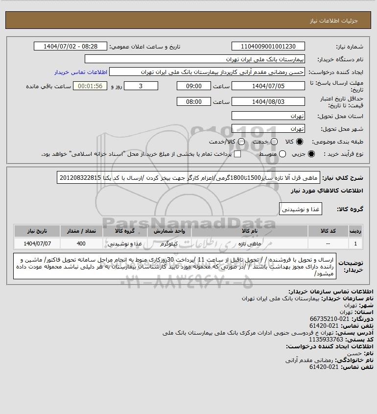 نام دستگاه خریدار:بیمارستان بانک ملی ایران تهران