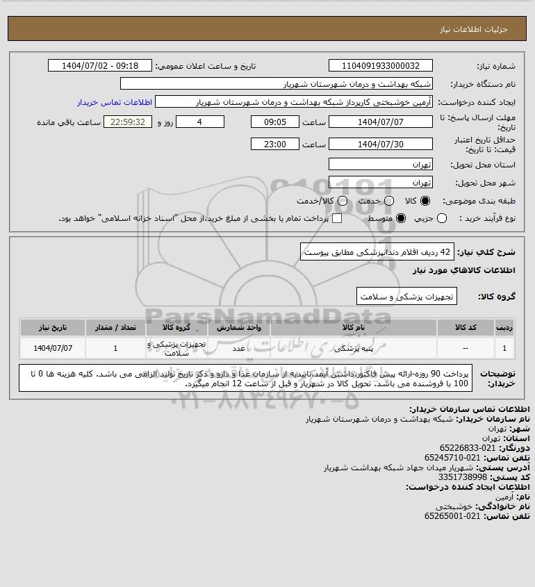 شرح کلی نیاز: 42 ردیف اقلام دندانپزشکی مطابق پیوست