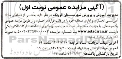 مزایده واگذاری بخشی از فضاهای مازاد آموزشی، تجاری و اداری