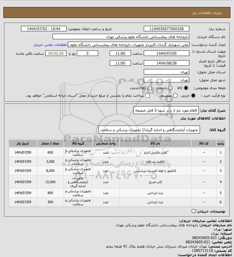 | 6 | -- | درن جراحی | عدد | تجهیزات پزشکی و سلامت | 500 | 1404/07/09 |