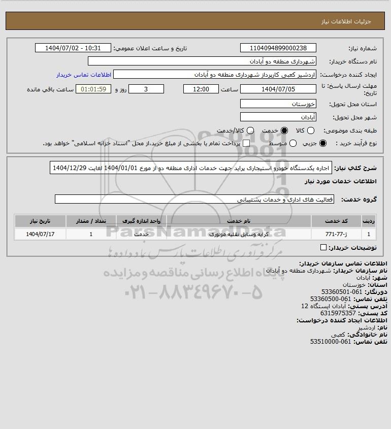 نام دستگاه خریدار:شهرداری منطقه دو آبادان