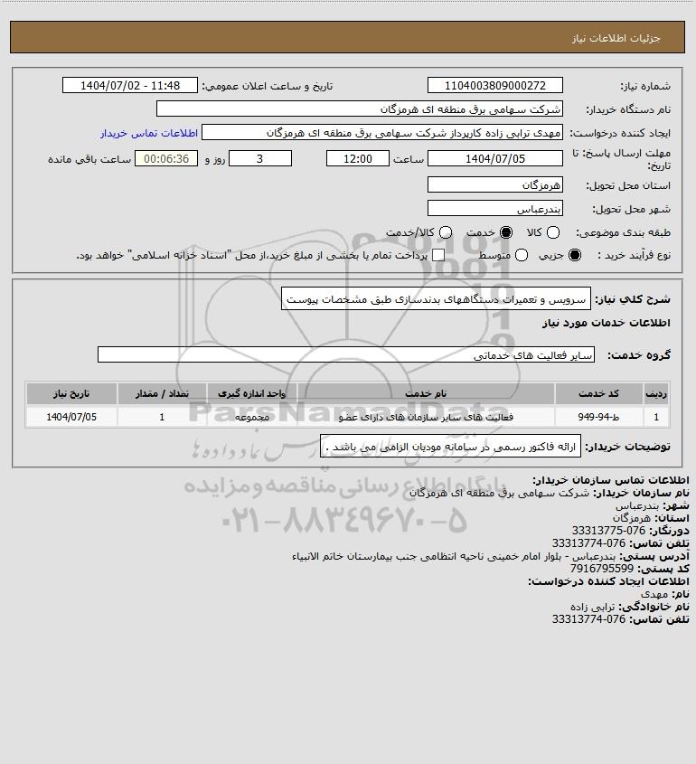 نام دستگاه خریدار:شرکت سهامی برق منطقه ای هرمزگان