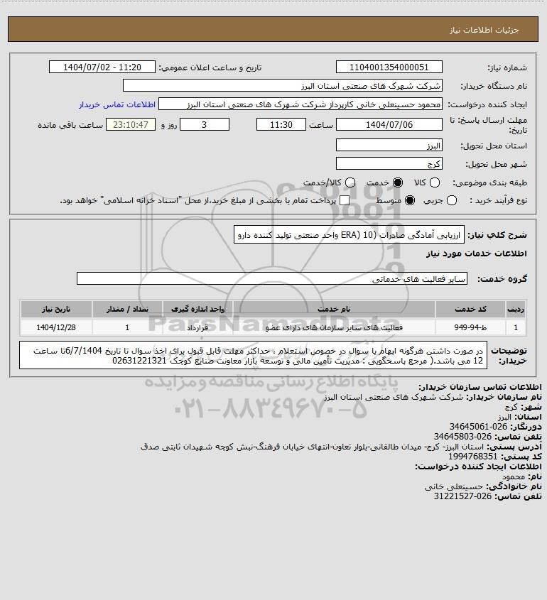 نام دستگاه خریدار:شرکت شهرک های صنعتی استان البرز