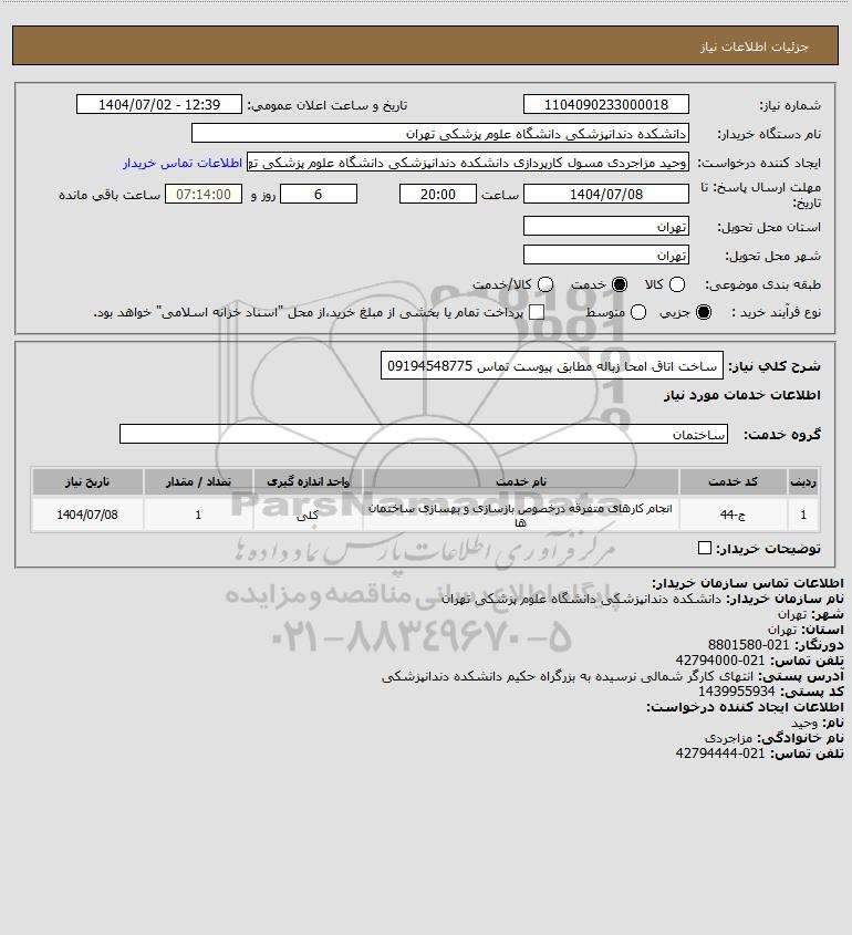 نام دستگاه خریدار:دانشکده دندانپزشکی دانشگاه علوم پزشکی تهران