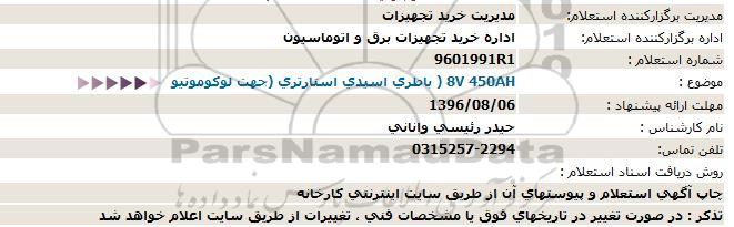 موضوع : باطری اسیدی استارتری جهت لوکوموتیو V450AH 8