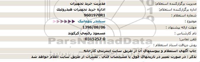 اداره برگزارکننده استعلام: اداره خرید تجهیزات هیدرولیک